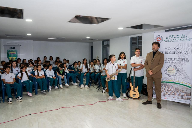 El evento incluyó la presentación musical del coro y grupo instrumental Sonidos que Transforman, de la Institución Educativa Rural Miguel Antonio Caro.