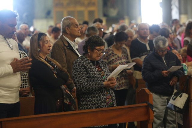 Los creyentes escucharon atentos la misa y entonaron algunos cantos religiosos.