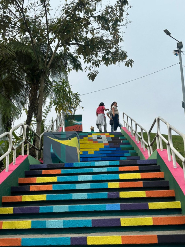Jaider, artista plástico y urbano de Manizales, recuerda que hace seis años también pintó estas escaleras y otras seis en distintos puntos de la ciudad. En ese momento, con otros compañeros, representaron unos peces.