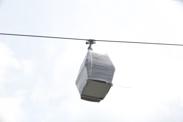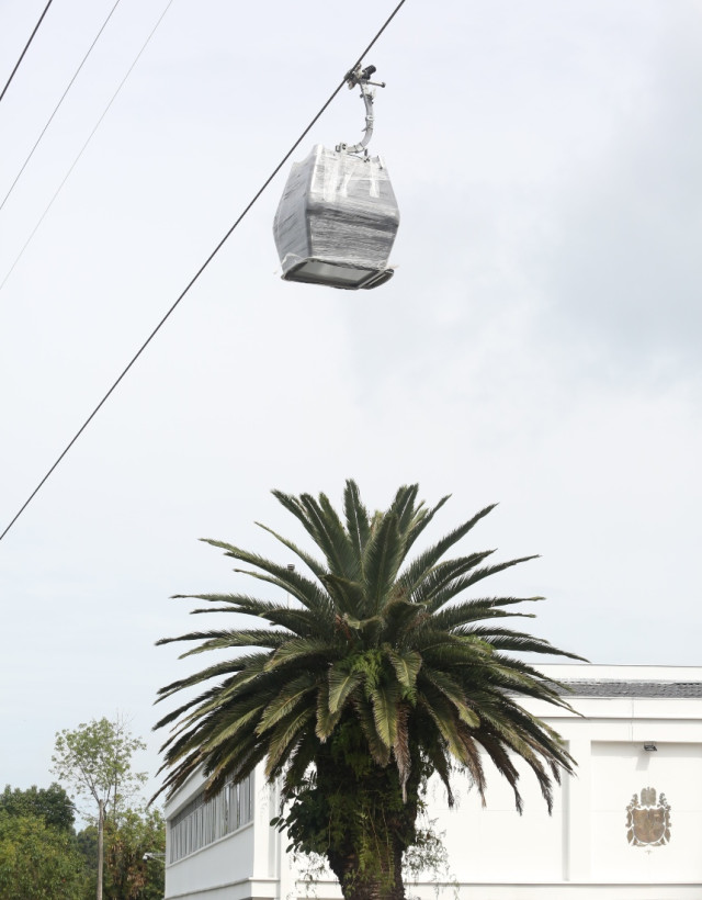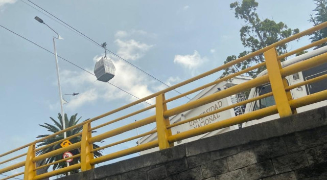 La góndola estacionada en la línea 3 del cable aéreo es visible desde la avenida Paralela.