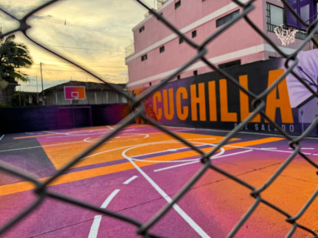 Fotos | Cortesía Sepc | LA PATRIA Esta es la intervención que Sepc hizo en la cancha de la Cuchilla del Salado y que fue nominada en la plataforma internacional de arte urbano Street Art Cities.