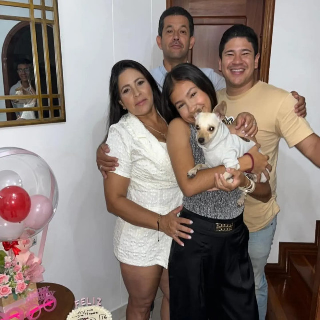 Mauricio con su esposa Elena, sus hijos Simón y María José, y Cory, su perrito.