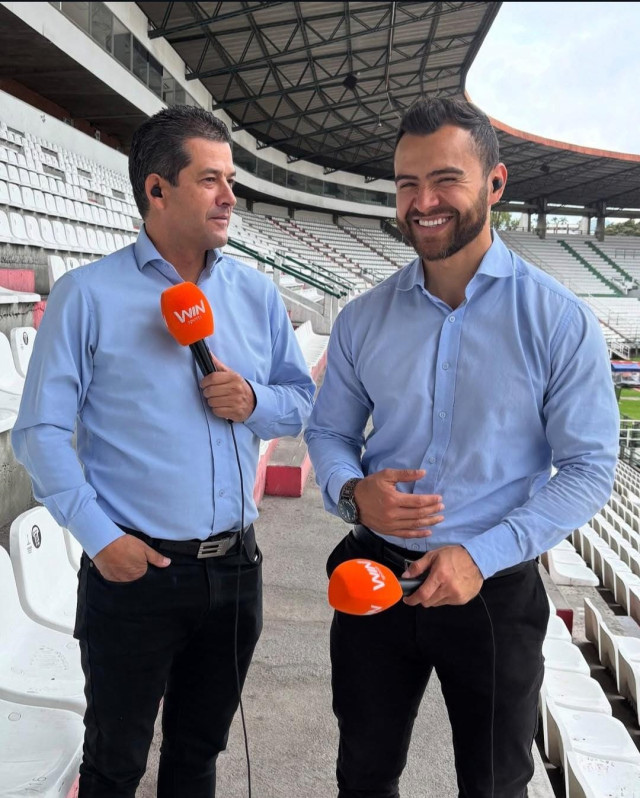 Mauricio con Yamid Quiceno, uno de sus compañeros de Win Sports en Manizales.