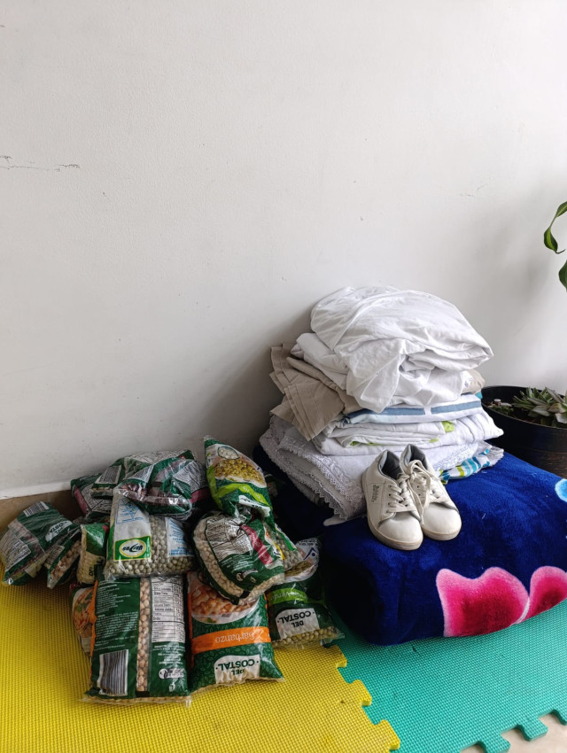 Ibeth Rocío recibe donaciones en La Carola para enviarlas a los damnificados en el norte del país.