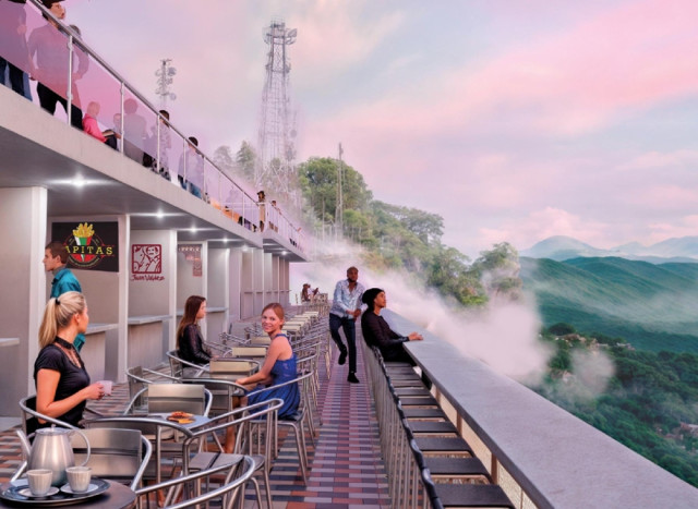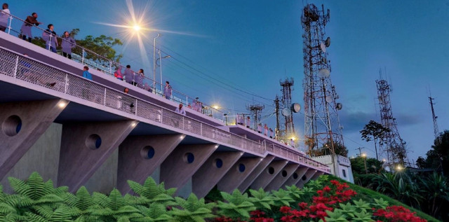 - Edificación de un puente de cristal en la ladera, con terrazas cubiertas y módulos comerciales en el ingreso y en la salida.