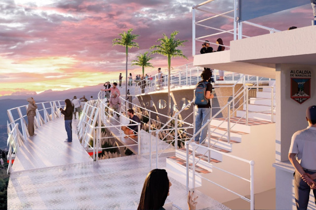 El 31 de diciembre del 2025 estaría listo un bulevar de Chipre como nuevo. En Manizales alistan puente de vidrio, ciclobandas, muelle, terrazas, fuentes y juegos. Así se vería el mirador en la Feria de Manizales del 2026.