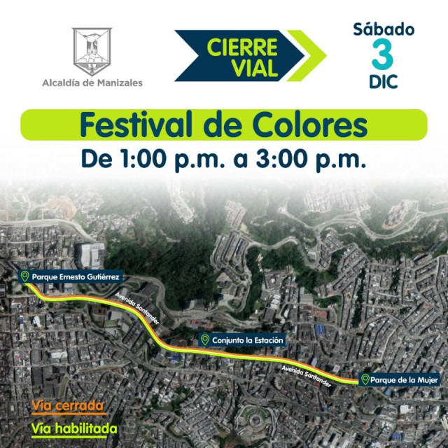 La Gobernación de Caldas y la Alcaldía de Manizales realizarán actividades este fin de semana en la ciudad que generarán cierres viales.