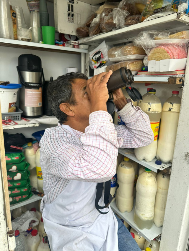El vendedor de kumis confirma que el halcón llega por temporadas, entre octubre y marzo. “La curiosidad me hizo verlo allá. Un señor avistador de aves que vive cerca Orlando Albarán me dijo que era un halcón peregrino. Ya le comentaron después a don Javier Salazar, otro avistador, y él le ha comentado a otra gente. Han llegado muchas personas a preguntarme por el halcón”.