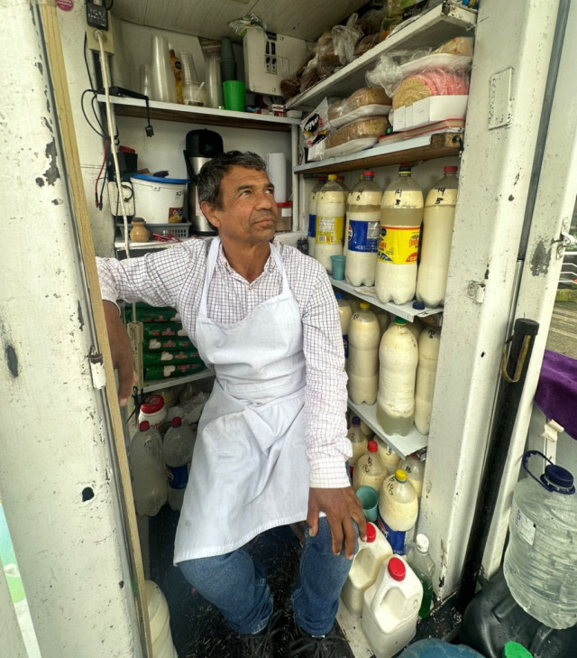 Luis Carlos Henao, vendedor de kumis en el Parque de La Mujer.