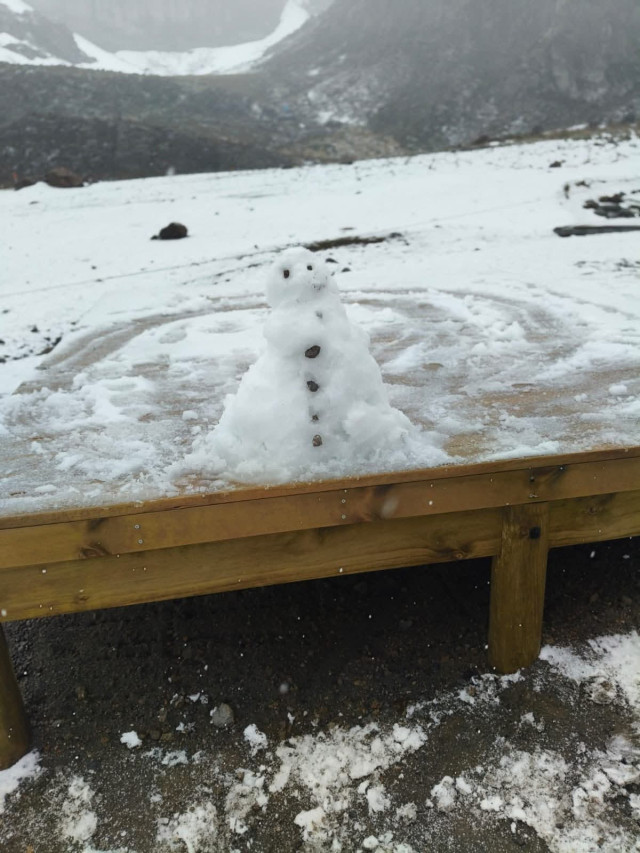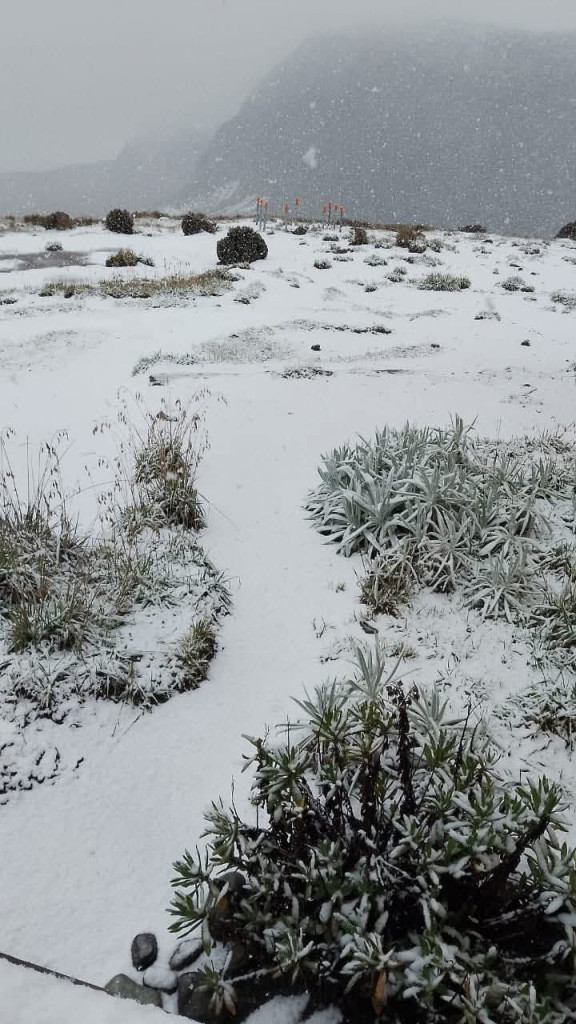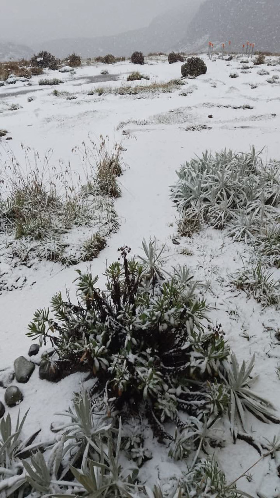 Este jueves (12 de marzo) se registro una nevada en el volcán Nevado del Ruiz, en el sector de Brisas en la vía entre Manizales y Murillo (Tolima).