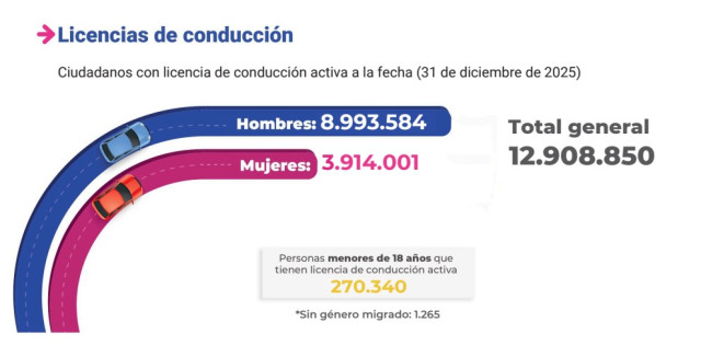 Por otra parte 12 millones de colombianos cuentan con licencia de conducción activas, con fecha de corte al 31 de diciembre de 2025.