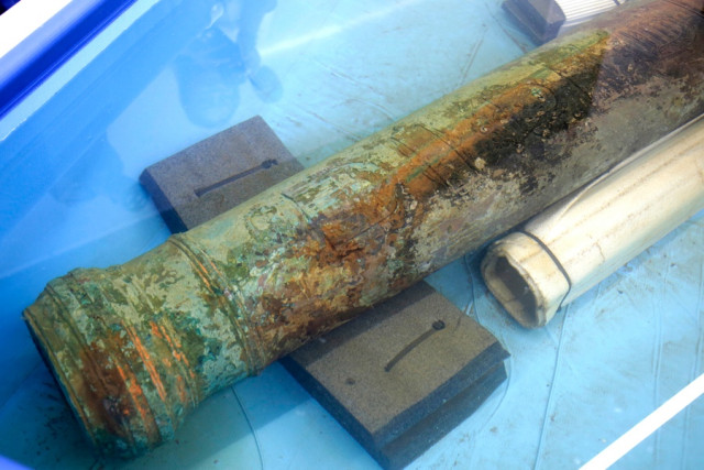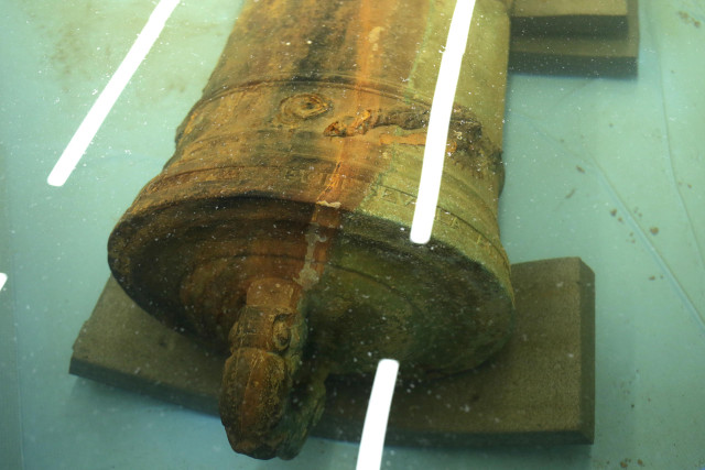 Foto | EFE | LA PATRIA Fotografía de un cañón que la Armada Nacional de Colombia recuperó del naufragio del galeón San José que yace en el fondo marino en un punto cercano a Cartagena de Indias.