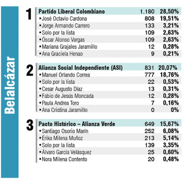 Candidatos más votados en Belalcázar, Caldas