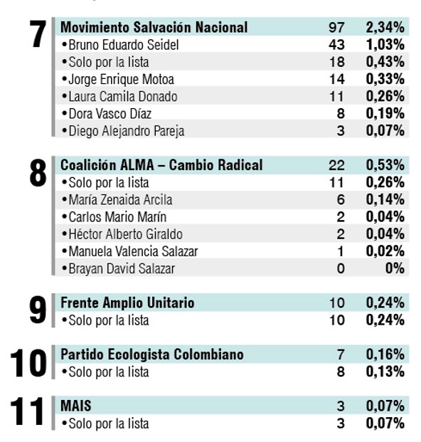 - Pacto Histórico-Alianza Verde: 3979 votos