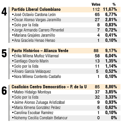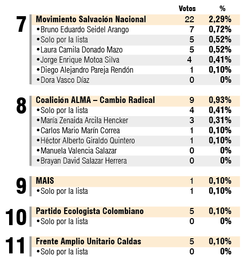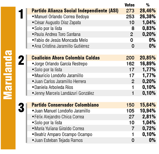 Detrás de esa lista apareció la coalición Ahora Colombia, que se llevó el 20,85% de los sufragios y el segundo lugar como la opción más votada en Marulanda.