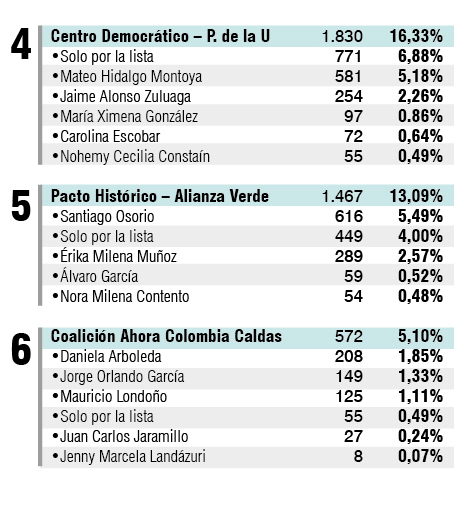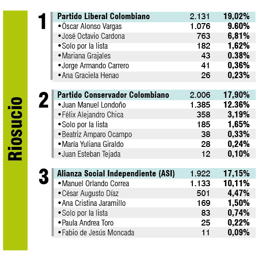 Además, hubo una sorpresa dentro de la lista de los rojos. Contrario a la tendencia del departamento, Óscar Alonso Vargas obtuvo más votos que José Octavio Cardona.