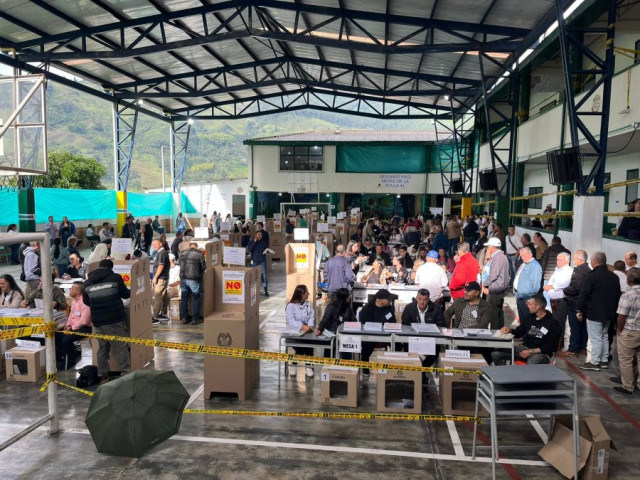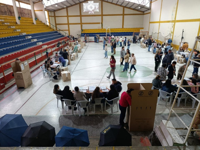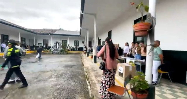 Con tranquilidad y normalidad continúa el proceso electoral en Aguadas, el Coliseo Cubierto de Cambumbia es uno de los puestos de votación en el municipio. Con un poco de bruma, este pueblo patrimonio de Colombia también se vinculó a esta jornada democrática nacional.