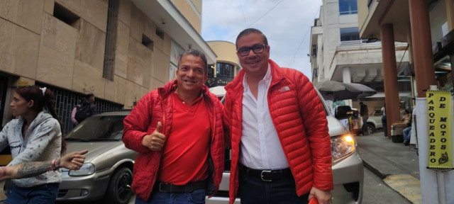 El caldense Óscar Alonso Vargas llegando a su sede política en compañía del oriundo de Córdoba, el senador Fabio Amín.
