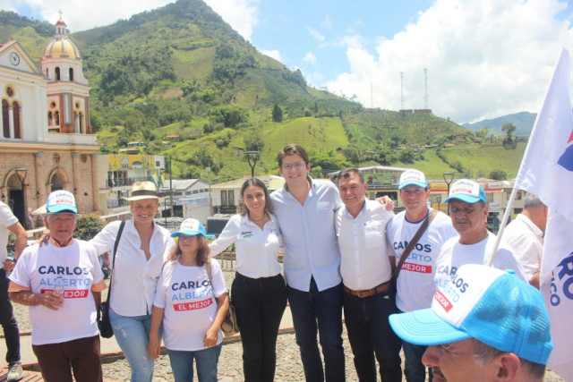 Acompañado de seguidores del Centro Democrático en Manzanares. A su lado la entonces candidata a la Asamblea, Karen Suárez.