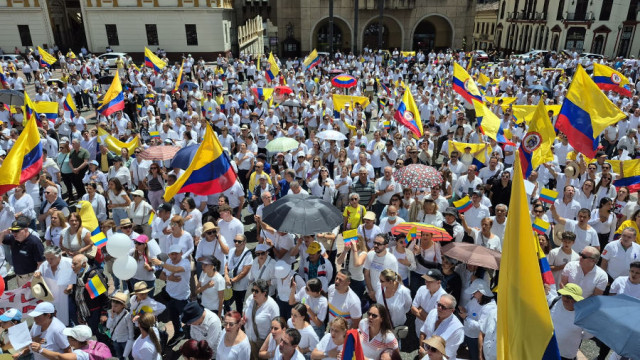 Esta es una imagen del acompañamiento que tuvo en Manizales Miguel Uribe Turbay este domingo (15 de junio) en la Marcha del Silencio en rechazo a su atentado y a los actos violentos que han ocurrido en otras regiones del país.