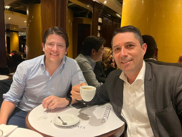 Tomando café con Alejandro Corrales.