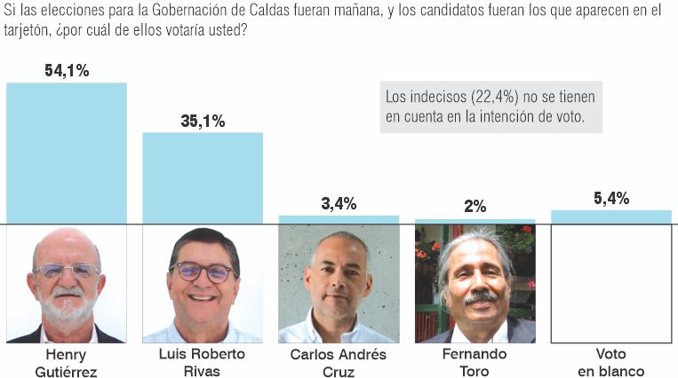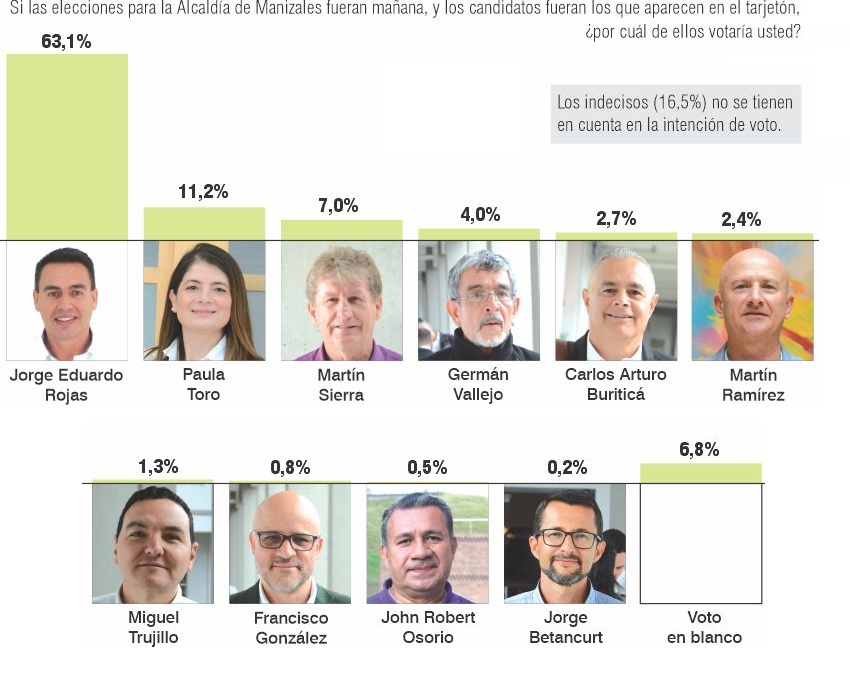LA PATRIA publicó este domingo la gran encuesta sobre la intención de voto a la Alcaldía de Manizales, que da al candidato Jorge Eduardo Rojas como líder, y a la Gobernación de Caldas, que tiene punteando a Henry Gutiérrez, realizada por Invamer.
