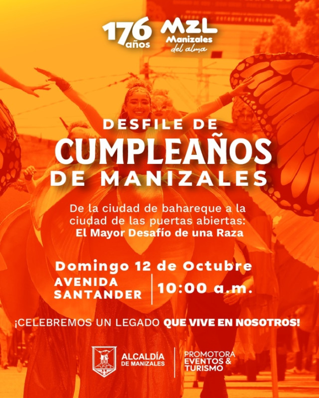 El desfile hace parte de la programación oficial por los 176 años de Manizales y recorrerá la avenida Santander, desde el sector El Triángulo hasta la carrera 22 con calle 24.