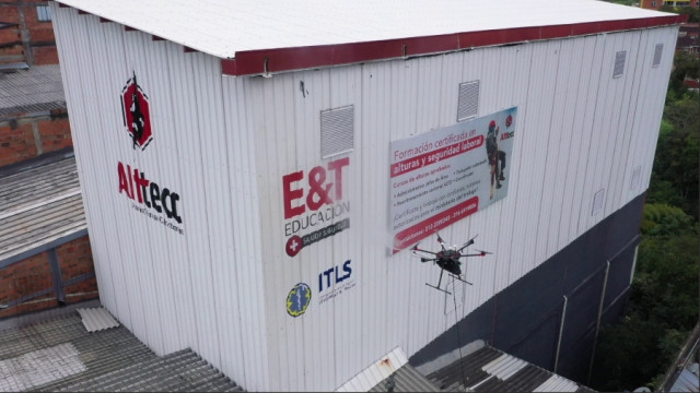Para Giovanni Cañón, gerente de la Escuela Técnica Colombiana (E&T) socio de este proyecto con Taclla, el eje es la seguridad. “La tecnología no elimina el trabajo, lo transforma”. En Colombia, los trabajos verticales están regulados, es un riesgo estructural y la discusión pasa por reducirlo.
