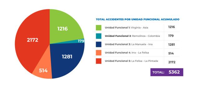 Según la página de la Concesión Pacífico 3, con corte al 31 de mayo, desde que operan estas son las cifras de accidentes, lesionados y muertos en los tramos que operan.
