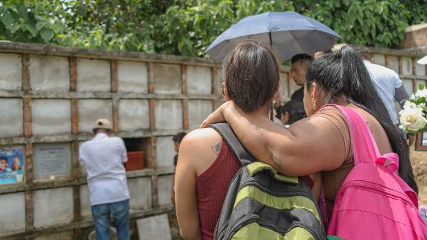 Las familias también participaron en una ceremonia religiosa católica en la capilla ubicada dentro del Cementerio San Nicolás, atendiendo a sus creencias espirituales. En ese mismo lugar se realizó la inhumación de dos de los cuerpos.