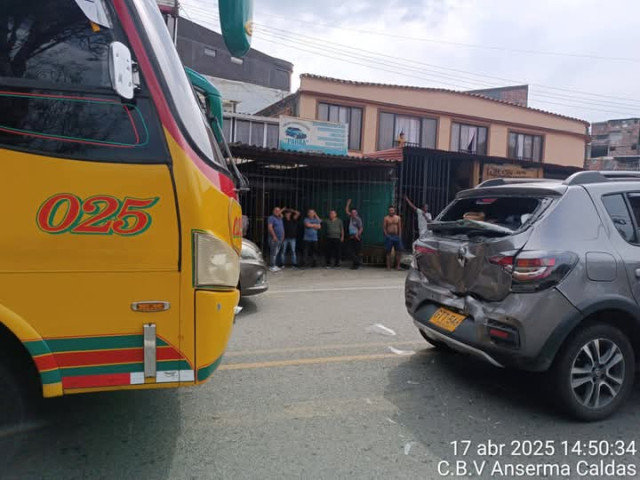 Esta tarde de Jueves Santo (17 de abril), Bomberos Anserma atendió un accidente entre dos automotores.