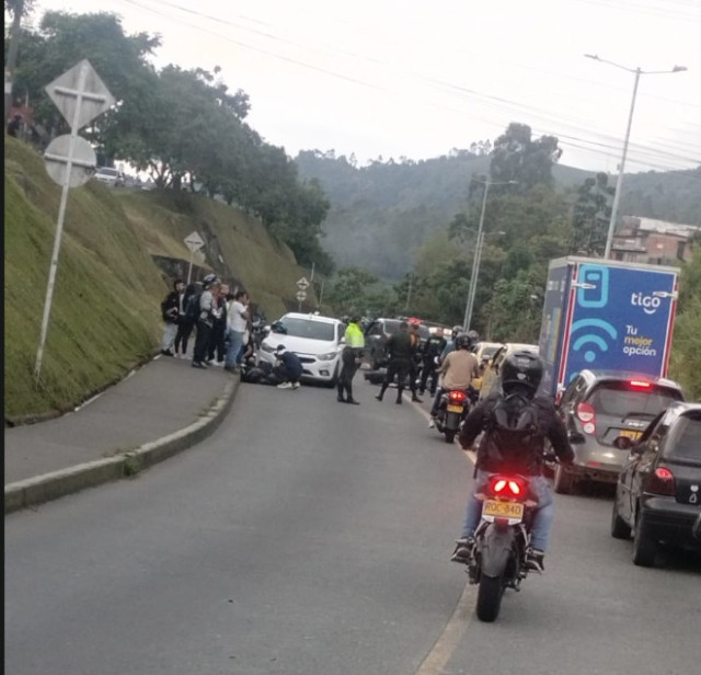 El primer siniestro ocurrió sobre las 5:00 p. m., cerca de la entrada a Villamaría. Un motociclista perdió el control y se cayó sobre la vía Panamericana y su vehículo terminó atravesado en la mitad de la carretera.