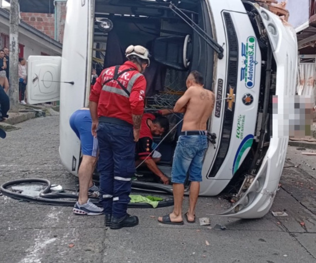 "Tuvo volcamiento lateral. Hay dos lesionados, el conductor y una menor de edad, llevados al SES Hospital de Caldas y a la clínica de La Presentación", anotó. Acudieron Bomberos, GER y ByR.