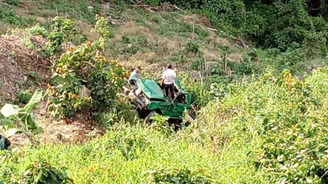 Una camioneta se salió de la vía y rodó por un abismo. Bomberos Voluntarios y ambulancias del Hospital San José de Aguadas atendieron la emergencia y rescataron a tres personas, que fueron trasladadas al centro asistencial del municipio del norte de Caldas.