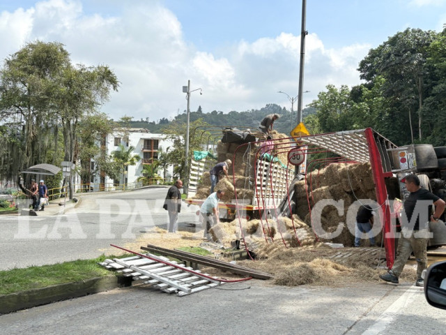 El vehículo, que transportaba heno, terminó sobre un carril en la vía de descenso y lo terminó obstaculizando.