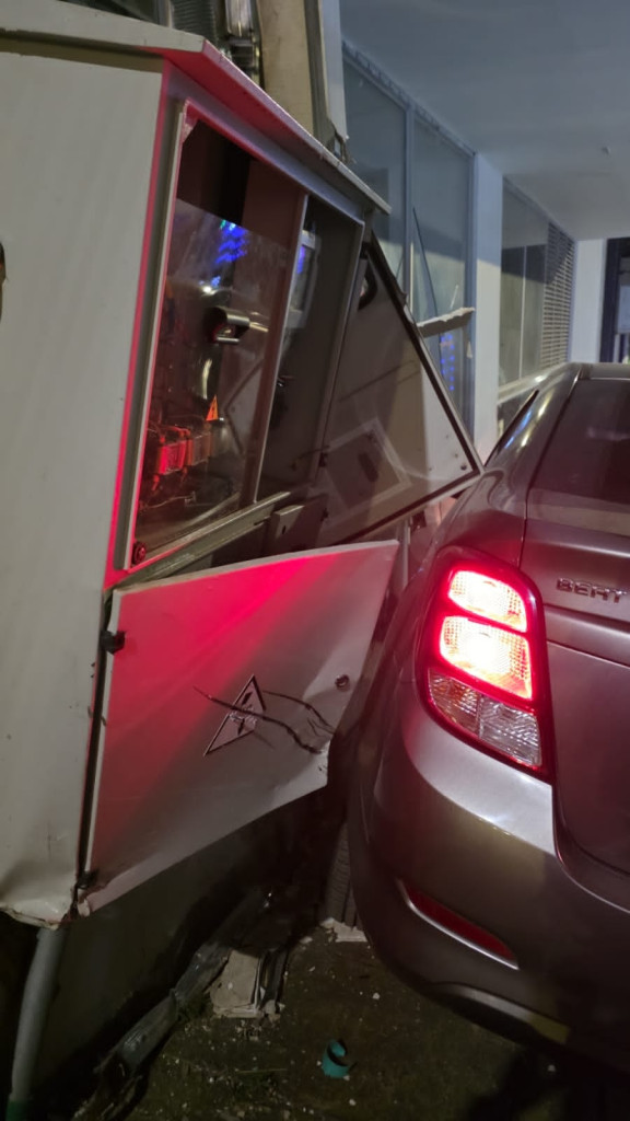 El vehículo también causó daños en la caja donde se encuentran los contadores de energía y terminó impactando una de las ventanas del centro comunitario Cacique Ocuzca.