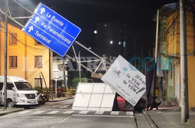Un accidente de tránsito se presentó en la madrugada de este Viernes Santo (3 de abril) en Manizales. Un vehículo particular bajaba por la ruta que de Ondas de Otún conduce hacia La Fuente y en la recta de Villa Nueva se salió de la vía, impactó un poste y tumbó la valla publicitaria.