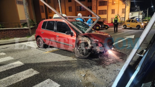 El golpe fue tan fuerte que despertó a los vecinos del sector. El siniestro ocurrió a la 1:31 a.m., el carro involucrado es un Renault Clio de color rojo.