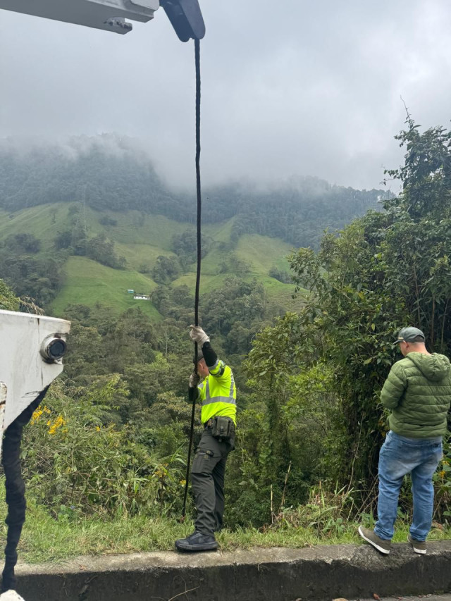 Posteriormente, con el uso de equipos especializados, los uniformados adelantaron las labores para recuperar el vehículo y restablecer la movilidad en el corredor vial.