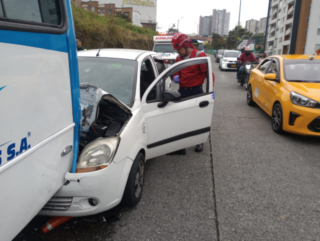 Héctor Hernando Gómez Echeverri, de 37 años, resultó lesionado tras chocar esta mañana en su automóvil contra una buseta, de la empresa Socobuses.