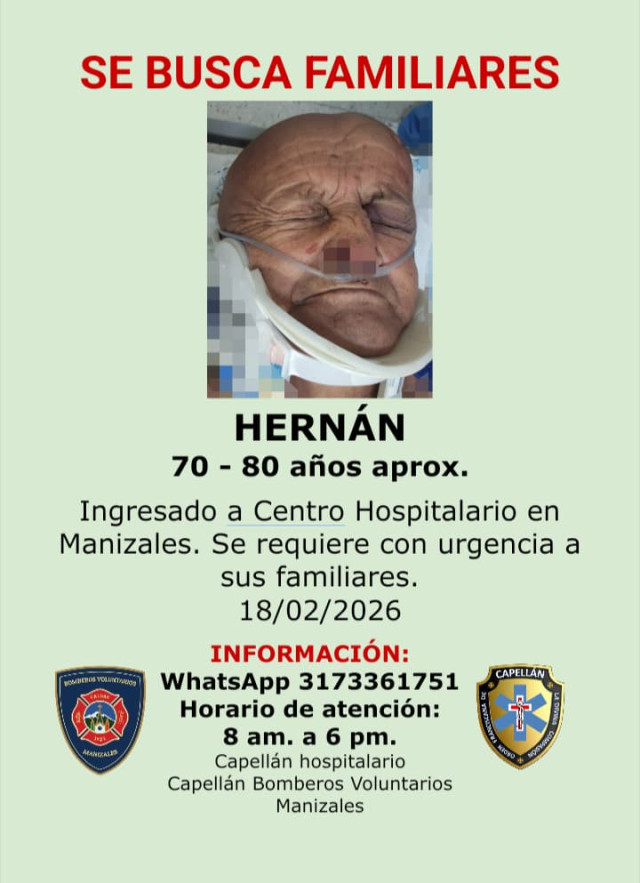 Requieren con urgencia a la familia de Hernán, hospitalizado en Manizales.
