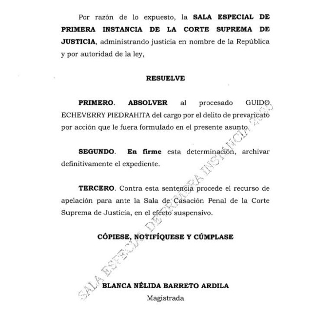 La Corte Suprema de Justicia absolvió en primera instancia al exgobernador de Caldas y ahora senador, Guido Echeverri Piedrahíta, investigado por prevaricato por acción desde el 2020.