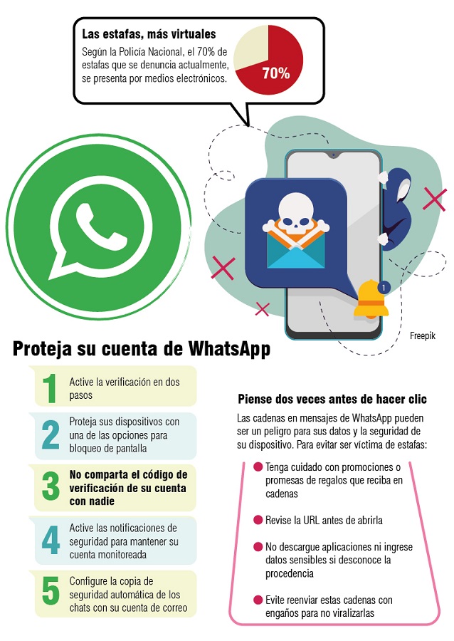 Los delincuentes aprovechan que la víctima cae en su juego para solicitarle códigos y se apropian de la cuenta de WhatsApp.