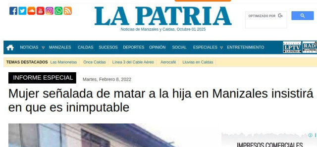 - -Manizales. Menor, de 2 años, asesinada, al parecer, por la mamá.