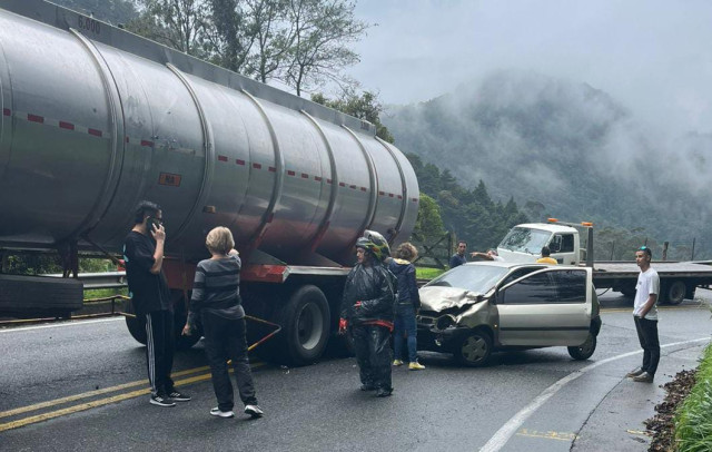 Esta misma tarde de martes (4 de febrero), en Sabinas, vía Manizales-Bogotá, chocaron un Twingo y un camión cisterna. Sin lesionados.
