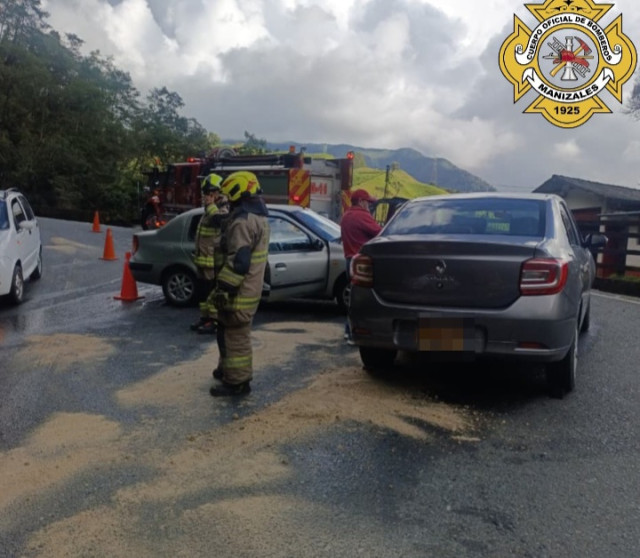 Bomberos informó que atendió un siniestro vial entre dos carros en la vía Manizales-Bogotá, kilómetro 15, sector La Amapola.
