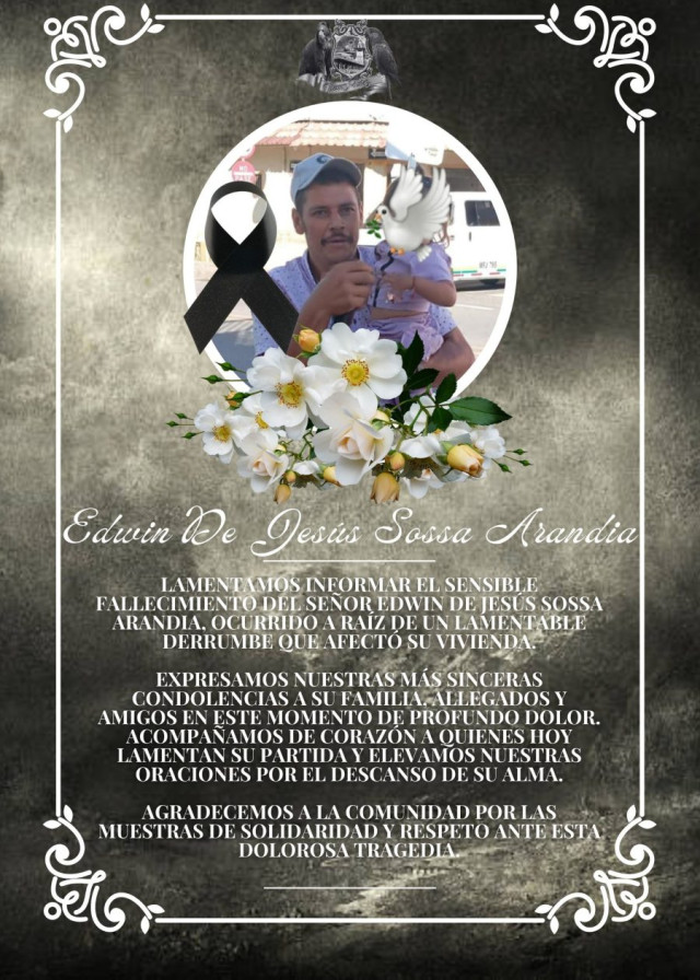 Edwin de Jesús Sossa Arandia, de 44 años, quedó sepultado por el deslizamiento que cayó sobre su casa. El Cuerpo de Bomberos, con su especializado equipo de búsqueda y rescate, trabajó incansablemente en el lugar, narró Riosucio Online.