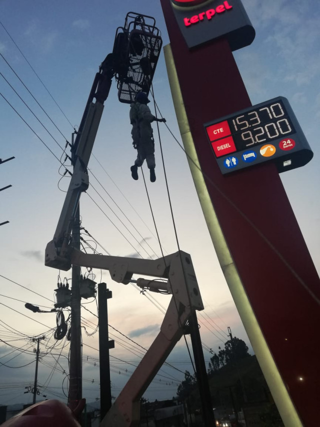 En la tarde de ayer se reportó una emergencia con el operario de una pluma (grúa) en Maltería, en la estación de servicio frente al Recinto del Pensamiento.