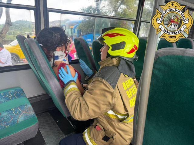 El Cuerpo Oficial de Bomberos de Manizales atendió de manera oportuna un siniestro vial registrado en la avenida Santander con calle 33, donde se registró una colisión múltiple que involucró tres vehículos, dos de ellos de servicio público.