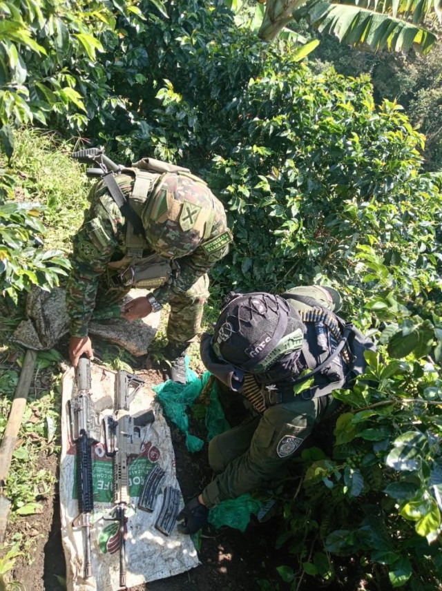 En un operativo realizado entre el Ejército y la Policía en el occidente de Risaralda, encontraron dos fusiles con cargadores y municiones que presuntamente pertenecen al Clan del Golfo.